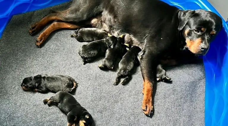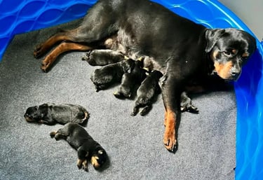 We believe that responsible and loving breeding is the foundation of raising healthy, happy, and well-adjusted Rottweilers. Our philosophy centers around prioritizing the health, temperament, and overall well-being of our dogs above all else. We carefully select our breeding pairs to ensure they meet high standards in conformation, genetic health, and temperament. We provide a nurturing and enriching environment for our dogs, with plenty of socialization and care from birth through adulthood. Our goal is to produce puppies that are not only excellent representatives of the Rottweiler breed but also loving companions for their future families.
